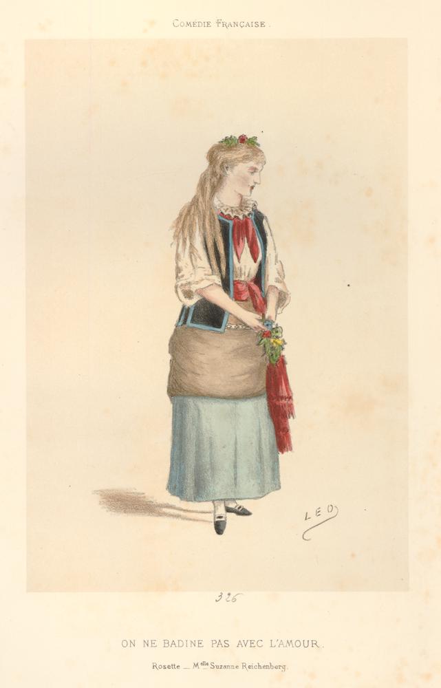 Rosette, figure de l’amour naïf et pur, est la victime innocente de ce jeu de séduction. Elle est manipulée par Perdican et Camille, qui la traitent comme un simple pion dans leur rivalité amoureuse. Son amour pour Perdican est sincère mais ignoré, et sa mort tragique souligne l’avertissement moral du titre : jouer avec l’amour peut avoir des conséquences fatales.