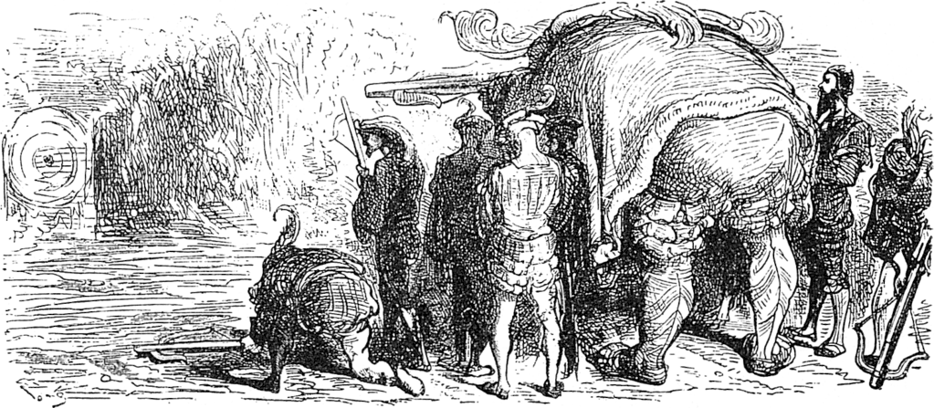 L’ordre donné par Picrochole est à la fois comique et tragique : il convoque immédiatement le ban et l’arrière-ban, menaçant de pendaison ceux qui ne se joindraient pas à son armée à midi. Cette mobilisation militaire disproportionnée pour une querelle aussi dérisoire souligne l’absurdité des décisions politiques fondées sur la vengeance. L’humour naît également de l’exagération dans les préparatifs de guerre, décrits avec un luxe de détails : les chiffres astronomiques des soldats, les catégories d’artillerie (serpentines, basilics, couleuvrines, etc.), et l’organisation militaire, confiée à des figures grotesques comme le seigneur Trepelu ou le capitaine Engoulevent.