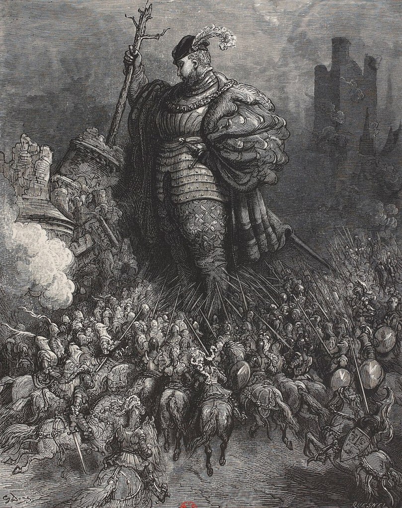 Cependant, Grandgousier adopte une approche plus mesurée. Plutôt que d’accepter pleinement cette aide, il choisit de se reposer sur ses propres troupes bien entraînées, réduisant ainsi l’impact de la guerre sur la population civile. Il déclare :